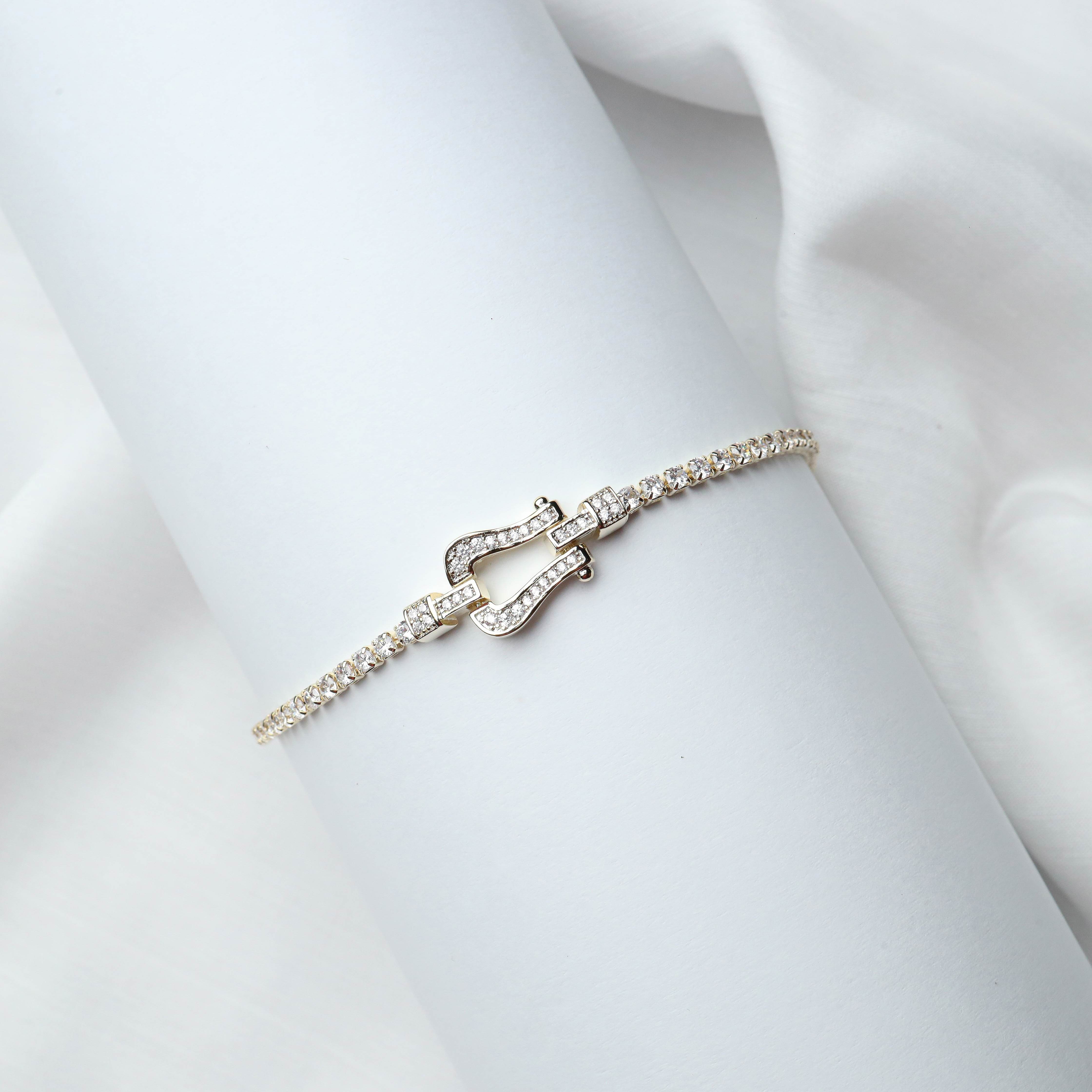 Elegant Gold Arc Bracelet with Crystal Detail