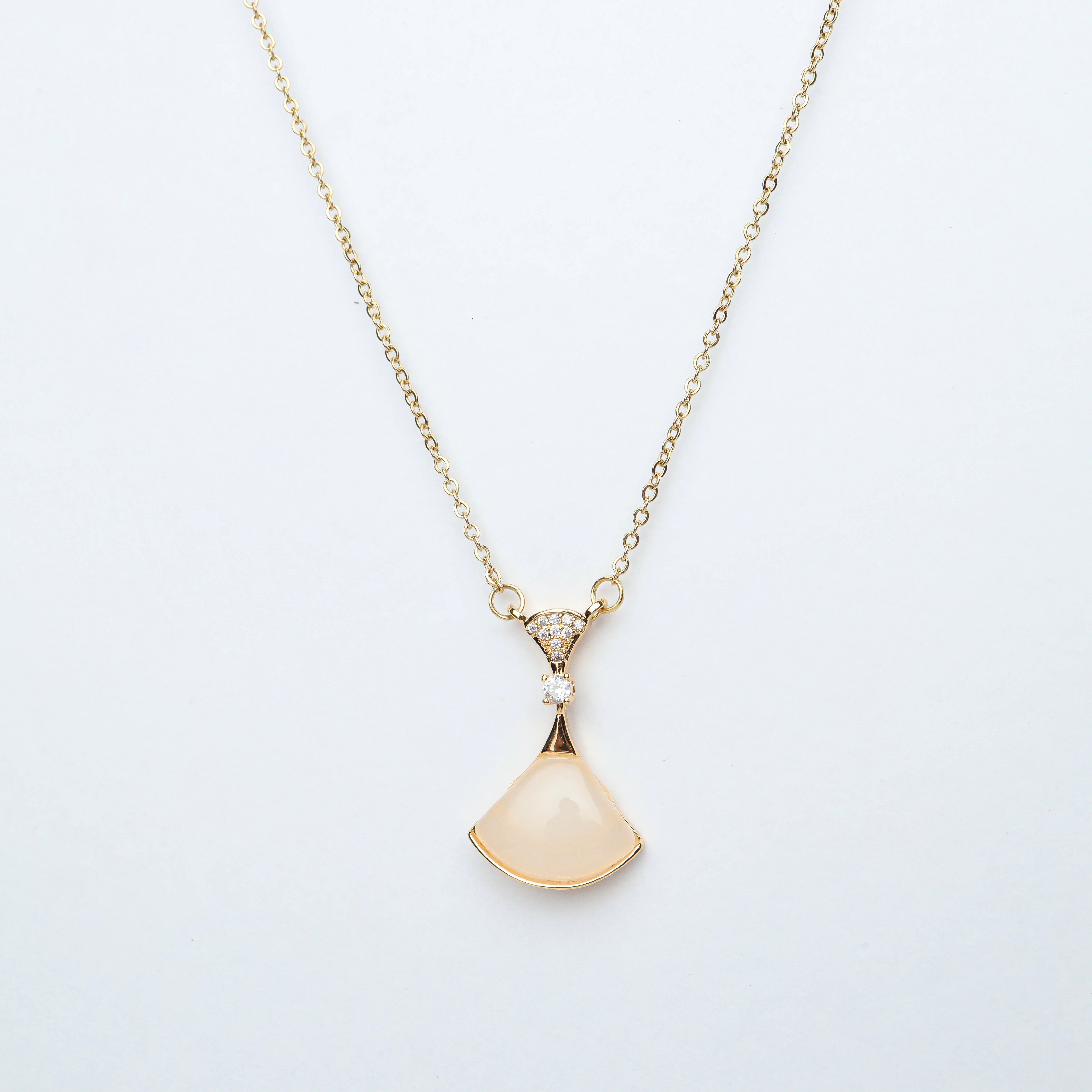 Gold Ginkgo Leaf & Rose Quartz Necklace